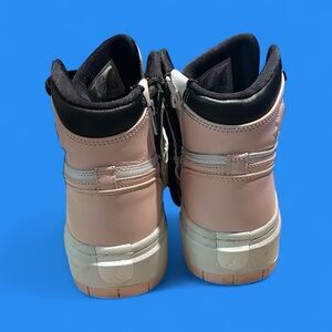 Nike Air Jordan 1 Elevate Low SE Psychic Tan, women Size 8, featuring a unique color block of psychic tan, sail, and black. These platform sneakers offer a fresh take on the classic Jordan 1 silhouette, perfect for adding a lift to any streetwear outfit.