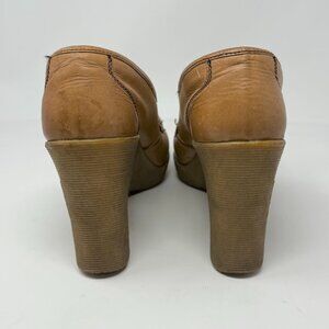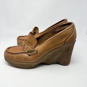 Vintage 1970s Famalore Hi-Up Platform Wedge Slip On Leather Loafer Hippie Boho
