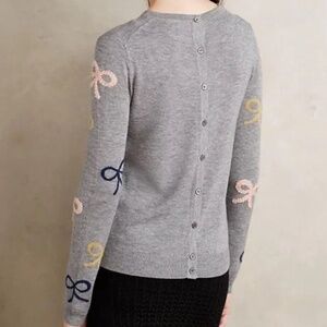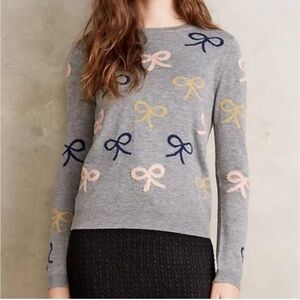 Anthropologie Trimmings Wool Blend Grey Sweater with Bows Size Medium