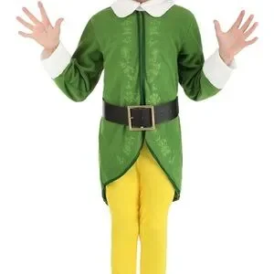 Get your child ready for festive fun with this delightful elf costume. Featuring a vibrant green top and cheerful yellow pants, belt, ears, wig, shoes- it's perfect for Halloween and imaginative play!