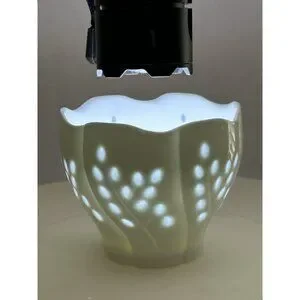 I placed a flashlight over the votive holder to show how the light shines through the translucent areas like it would when a candle is placed inside.