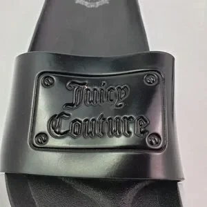 Juicy Couture Womens Size 8 Black White Slip On Casual Slide Sandals