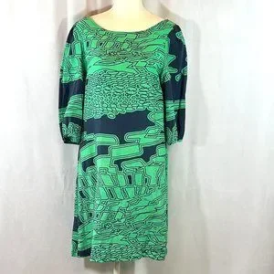 Needle & Thread Green & Blue Graphic Abstract Print Dress Size Small