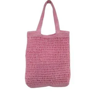NWT Flamingo Pink Woven Shoulder Tote Coastal Boho Summer Bag