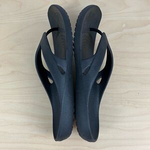 Crocs Women’s Size 7.0 Kadee II Flip Flops Triple Black Thong Sandals. Sandals are used but in good condition, overall normal wear. Has some marks/blemishes around. Plenty of life left, pictures show details!