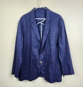 Vince Mens Linen Cotton Blend Navy Blue Double Button Single Vent Blazer XXL