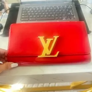 Vibrant LOUIS VUITTON Red Clutch with Gold Accent