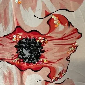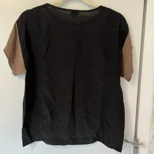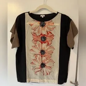 Excellent condition only worn ones stylish women's top featuring a bold floral embellishment. Perfect for casual outings or a day at the office. The black and brown colors add a touch of elegance.