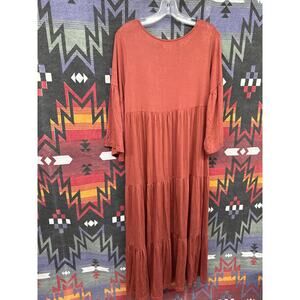 Natural Life Maxi Tiered Dress Rust Terracotta V-Neck XS/S Flare Boho Hippie