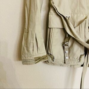 Elie Tahari tan/khaki windbreaker utility jacket.