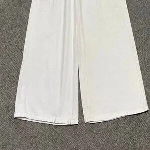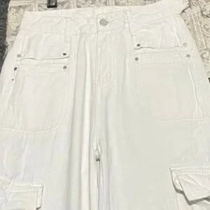 White High Rise Wide Leg Cargo Pants with Pockets