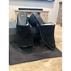 NEW In Box Maje Wave Suede Black Block Heel Mules Womens 38 / 7.5