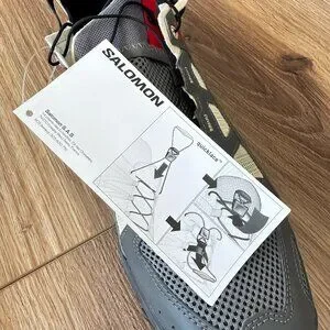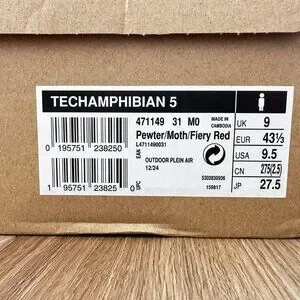 NEW in Original Box. Men's Salomon TECHAMPHIBIAN 5 Water Shoes in Size 9.5, Color Pewter/Moth/Fiery Red.