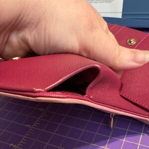 Stylish pink crossbody bag featuring a gold aftermarket chain. Ideal for a chic look. Two different shades of pink. Holds phone and has a built in wallet. Please see photos.