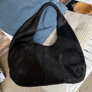 Chic black hobo bag with textured finish. Comfortable handle for easy carrying. Stylish and versatile.