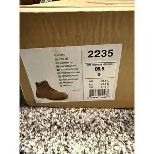 The Red Wing 2235 Workwear Boots are your ultimate companion for demanding work environments. Crafted in a rich brown leather, these boots offer a blend of durability and style. With features like a non-metallic toe, electrical hazard protection, and puncture resistance, your feet are safeguarded against workplace hazards. The lace-up design ensures a secure fit, while the waterproof construction keeps your feet dry in any weather. Designed for all seasons, these boots are pre-owned, offering you quality and reliability at a great value. Damaged box.