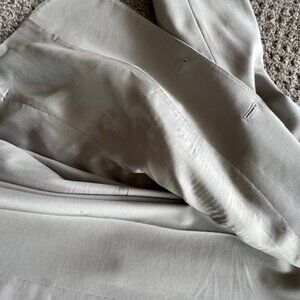 This suit you can wear all season long. Lined suit coat and unlined pants. Easy to pair with any color. The coat has beautiful stitching.
