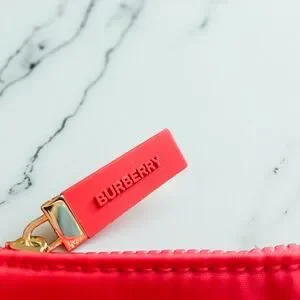 Stylish vibrant red, Burberry cosmetic pouch. Can also be used as a clutch or wristlet. Makes a great gift!