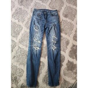 The American Eagle Men's 30x34 AE Next Level Airflex Slim Distressed Jeans are a stylish and trendy choice for men looking for a comfortable and slimming fit. These jeans feature a mid-rise waist and a skinny style, with a 5-pocket design for added convenience. The distressed detailing adds a touch of edgy flair, while the stretch denim fabric ensures both comfort and durability. Perfect for all seasons, these jeans are easy to care for with machine washable instructions. The solid blue color and American Eagle logo accents make these jeans a versatile and fashionable addition to any man's wardrobe.