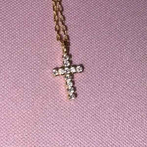 This stunning gold cross pendant necklace is perfect for any occasion. The delicate design adds a touch of elegance to your outfit. Ideal for gifting or personal use.