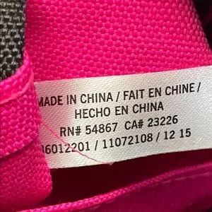 Bright pink fanny pack featuring a silver zipper pull with logo. Black zipper detail. One inside pocket