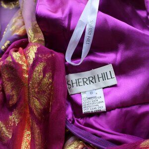 Step into elegance with this stunning purple and gold evening gown. Perfect for special occasions, this dress features a beautiful blend of colors and a flattering silhouette.