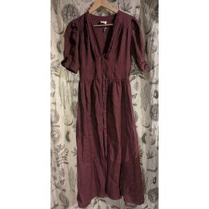 Reposhing this beautiful dress as it is too small for me. Beautiful burgundy linen button front with tie sleeves.