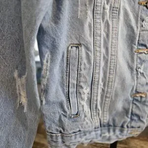 ASHLEY-VINTAGE CHARMM Light Blue Distressed Denim Jacket