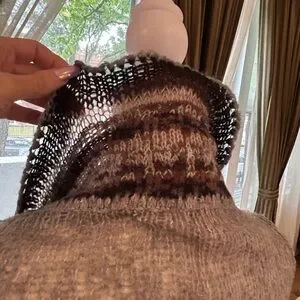 Embrace warmth with this cozy cardigan. Features intricate patterns in gray and brown. Perfect for layering.