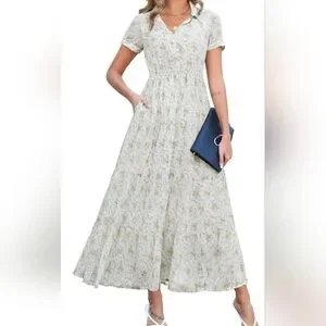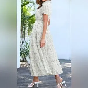 Step out in style with this chic cream floral maxi dress. Perfect for any occasion, it offers a blend of elegance and comfort.