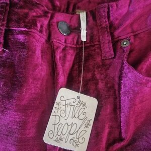 Free People velvet dark hot pink pants. Cropped at the ankle with a slight flair. Also with a slight stretch to it
