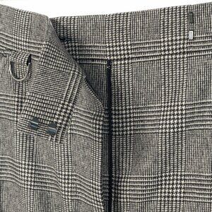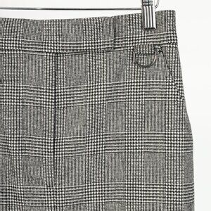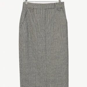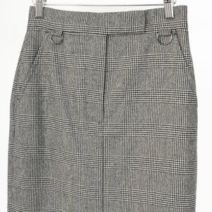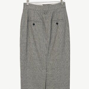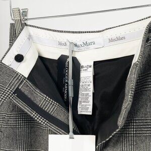 Made in Italy, this Pamir skirt in the "Black" colourway from Max Mara's Sfilata collection is crafted with a glen-plaid wool-blend flannel, and features a fitted waist with D-rings dangling below, a front double hook and zip fly closure, front slanted pockets, back buttoned welt pockets, a midi-length hem, a back vent, and is lined in a black satin. Size: US 4 (S) Condition: New with tags. Approximate Measurements (laid flat): Waist: 13.5" (34 cm) Hips: 18" (46 cm) Length: 29" (74 cm) Composition: Fabric: 91% virgin wool, 8% cashmere, 1% elastane. Lining: 95% acetate, 5% elastane.