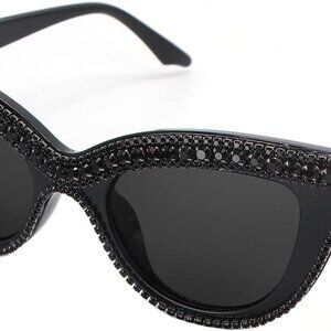 Cat Eye Sunglasses Bling Rhinestones Crystal Black Plastic Frame Eyewear