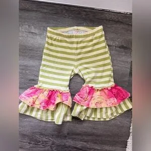 Giggle Moon Girls Outfit Dress and Ruffle Pants Set Floral Green Pink