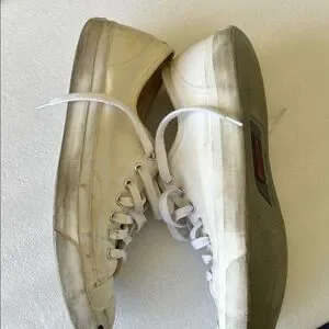 Stylish off-white Converse sneakers. Features classic lace-up design. Please see all pictures has some yellow stains on it
