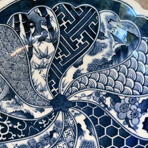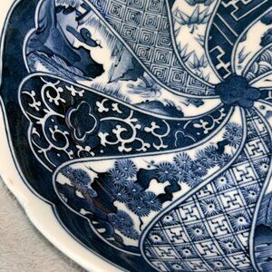 Japanese Hand Painted 10" Imari Arita Blue White Bowl