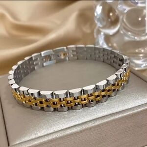 5Layer 10mm Beaded Bracelet 2 tone Classic Stainless steel Band Watch Chain Bang