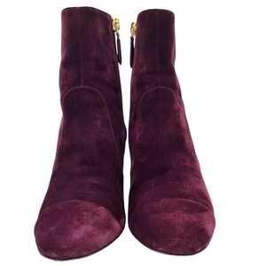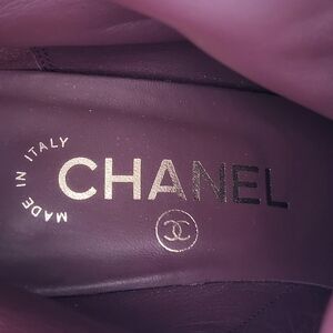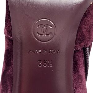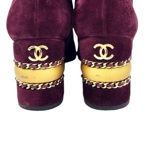 CHANEL CC Logo Suede Calfskin Chain Ankle Boots. Color: maroon/burgundy. Size: EU 36.5. Style #: G36655. Made in Italy.