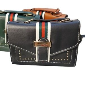 Keywords: crossbody bag, satchel, small purse, flap bag, studded bag, striped bag, shoulder bag, handbag, fashion bag, women's bag, stylish purse, casual bag, evening bag, designer inspired