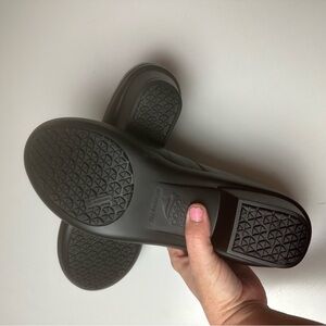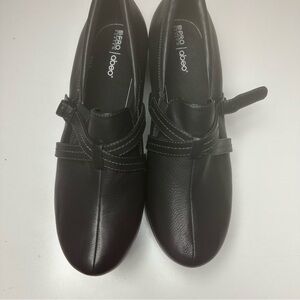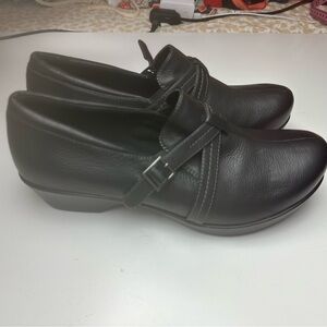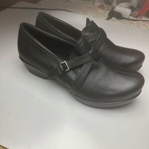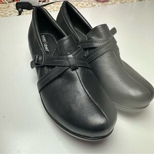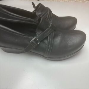 Elegant black leather mules. Features a stylish buckle. Ideal for daily comfort.