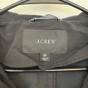 Chic black raincoat jacket with adjustable waist. Features front pockets and secure closures. Ideal for versatile styling.