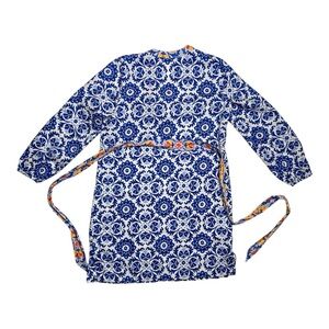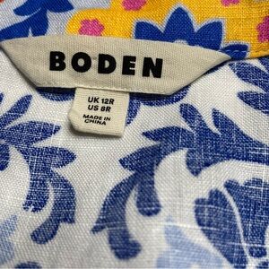 Boden Blue and White Floral Print Long Sleeve Linen Dress Mosaic Bloom Size 8
