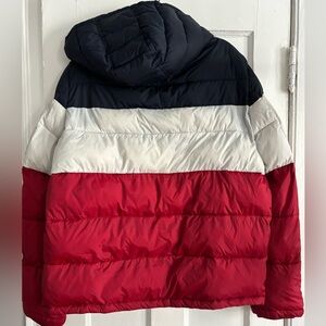 TOMMY HILFIGER Puffer Winter Jacket Red White Navy Color Block Retro Y2K Mens XL