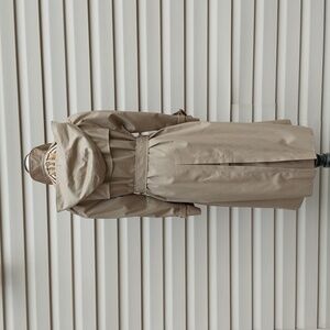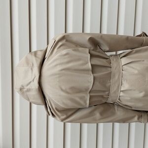 Elevate your style with this classic tan trench coat. Perfect for any occasion, this coat combines timeless design with modern elegance. This classic check lined trench coat is girl's size 13 -14 years. It runs large and is perfect fit for petite gals, check the measurements in the listing. The trench comes with belt and detachable check lined hood. Excellent pre-owned condition.