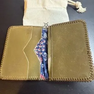 An earthy, minimalist sage green wallet, featuring a gorgeous blue floral lining and space for all your essentials. Compact and chic, this limited-edition sage green leather wallet for women is one you’ll want in your collection.