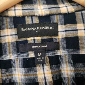 Banana Republic Men's Plaid Untucked Fit Shirt Navy Yellow Checkered Casual