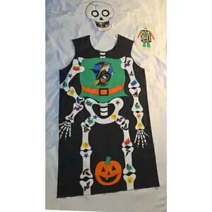 Vintage Skeleton Witch Pullover Halloween Costume Apron Mask Sheet 31" L 18" W