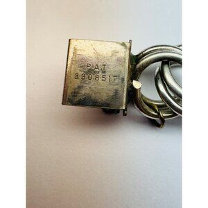 This estate vintage bracelet is crafted in solid sterling silver 925 and features a bold double interlocking link chain design. Measuring 6 inches in length and 13.6mm wide, it offers a substantial presence on the wrist while maintaining timeless style. The bracelet is secured with a box clasp and safety latch, both stamped STERLING and marked with the patent number 3308517, ensuring authenticity.