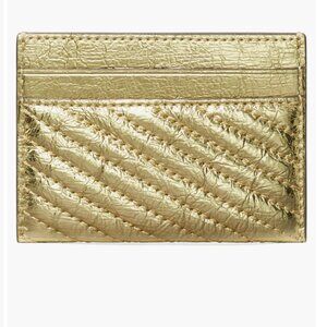 Tory Burch Leather Kira Moto Quilt Metallic Pave Logo Card Case Wallet Gold