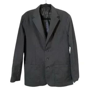 Eddie Bauer Mens Dark Gray Canvas Blazer Size M Medium Herringbone Sports Coat